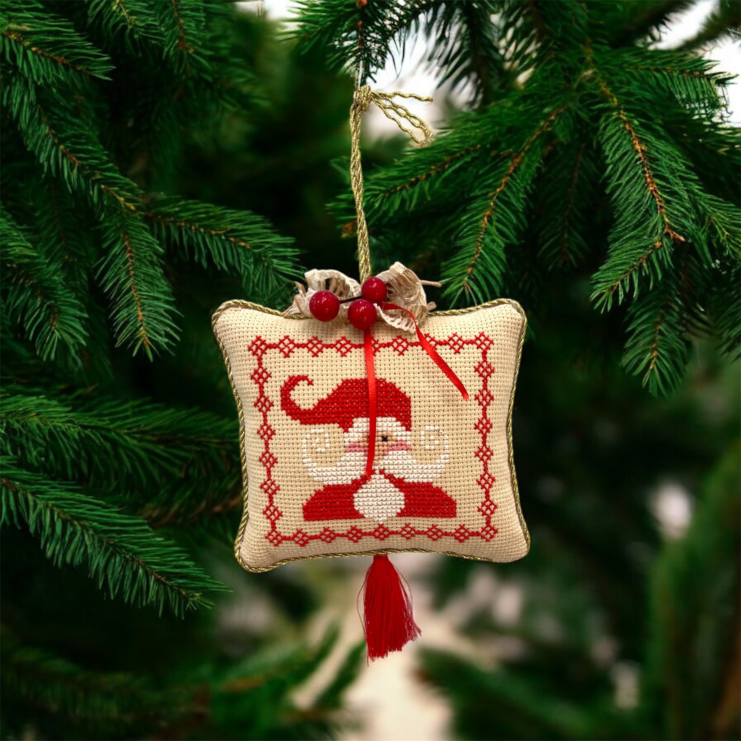 Φέτος τις γιορτές, χαρίστε ένα δώρο με πραγματική αξία και ψυχή! Αυτό το μοναδικό, χειροποίητο γούρι είναι κεντημένο εξ ολοκλήρου στο χέρι με την παραδοσιακή τεχνική της σταυροβελονιάς, αποτυπώνοντας την πιο αγαπημένη φιγούρα των Χριστουγέννων, τον Άγιο Βασίλη.