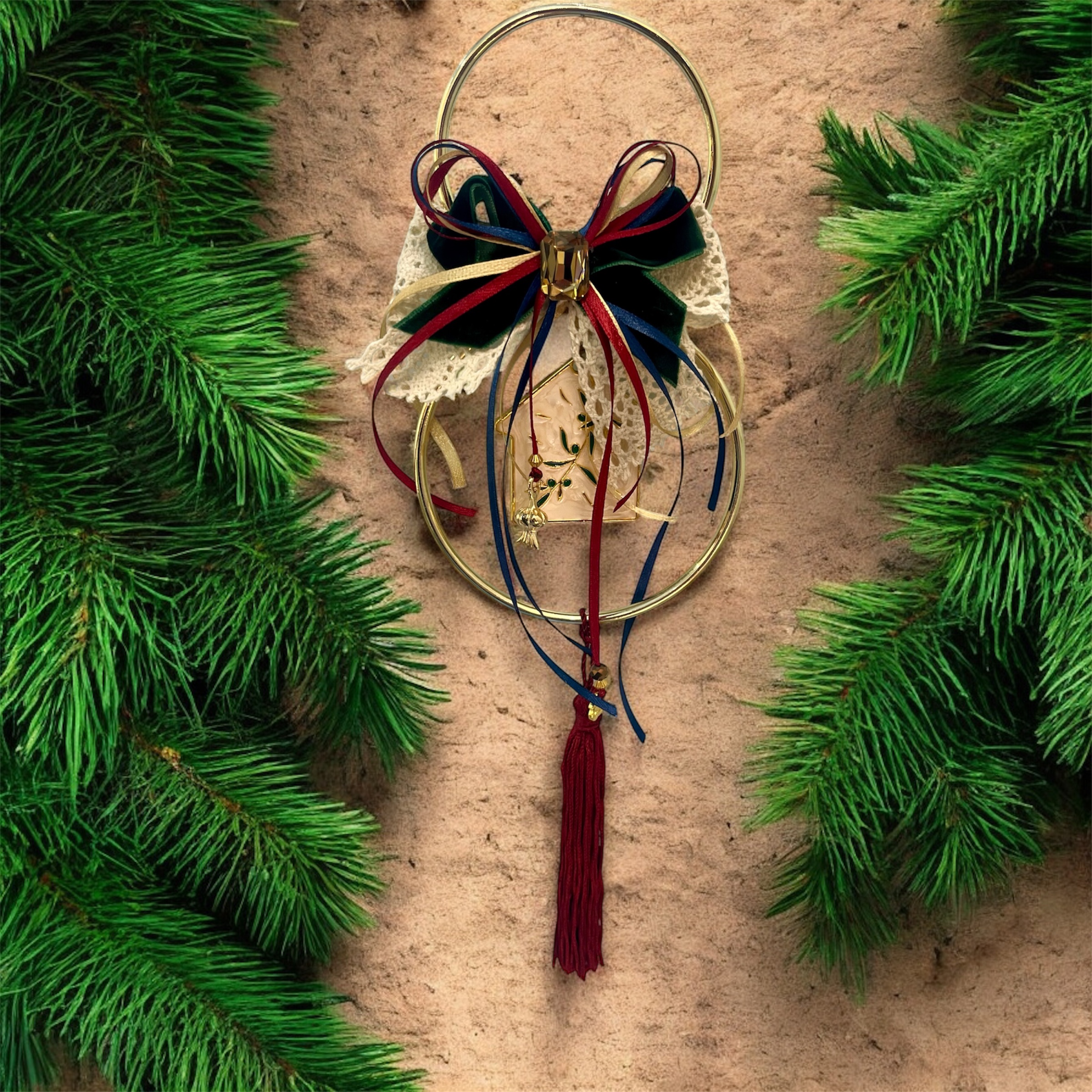 Στο κέντρο διακοσμείται με χρυσό ελαφάκι και την ευχή Merry Christmas, σύμβολο αφθονίας, δύναμης και καλοτυχίας. Ο φιόγκος στο επάνω μέρος, σε αρμονικούς χρωματικούς συνδυασμούς, προσδίδει κομψότητα, ενώ το κάτω μέρος ολοκληρώνεται με πράσινο γιορτινό διάκοσμο και κόκκινες λεπτομέρειες, που ενισχύουν τη φυσική και εορταστική του όψη.