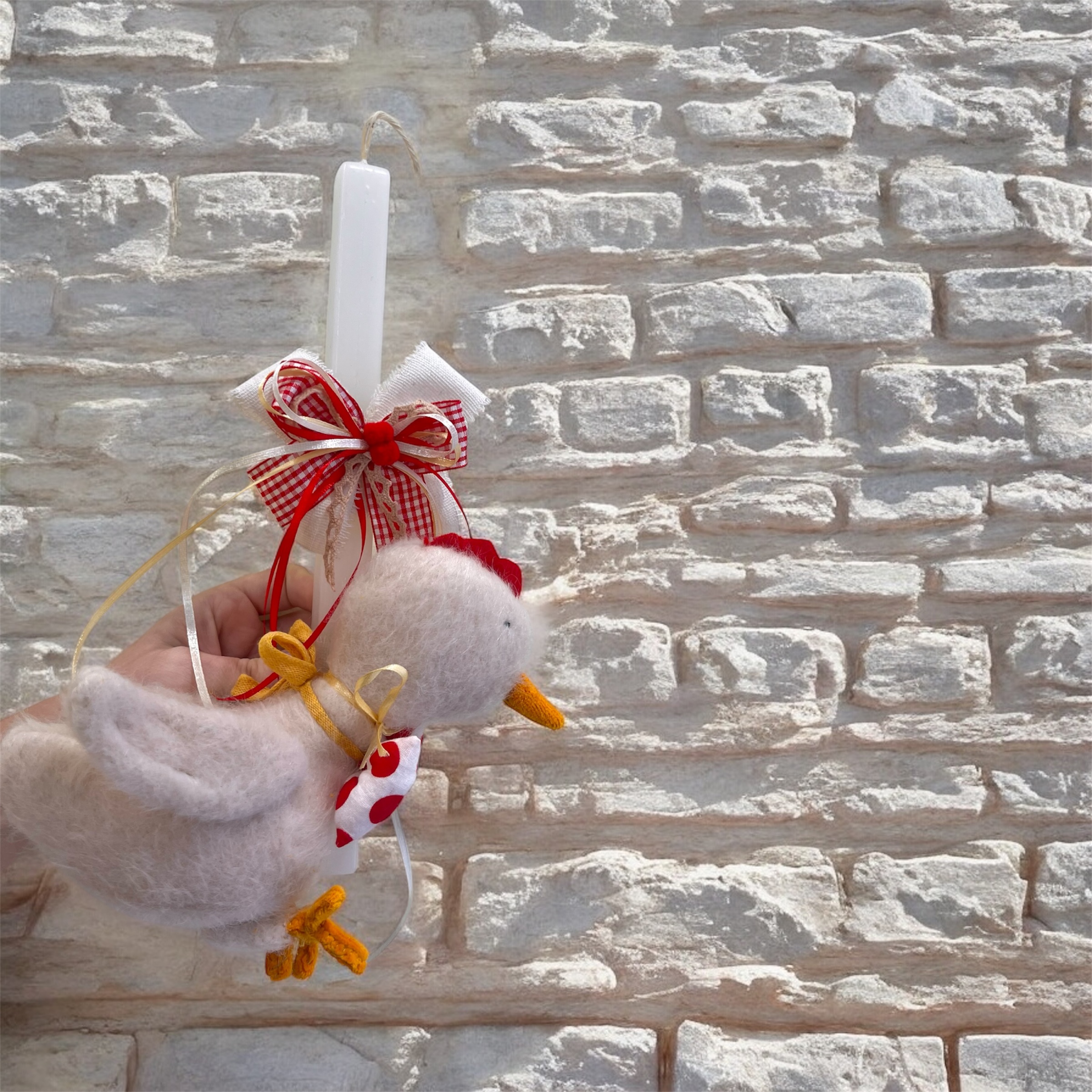 Μια χαριτωμένη χειροποίητη πασχαλινή λαμπάδα που θα κλέψει τις εντυπώσεις τη νύχτα της Ανάστασης! Η λευκή αρωματική λαμπάδα είναι διακοσμημένη με ένα γλυκό χειροποίητο κοτοπουλάκι.