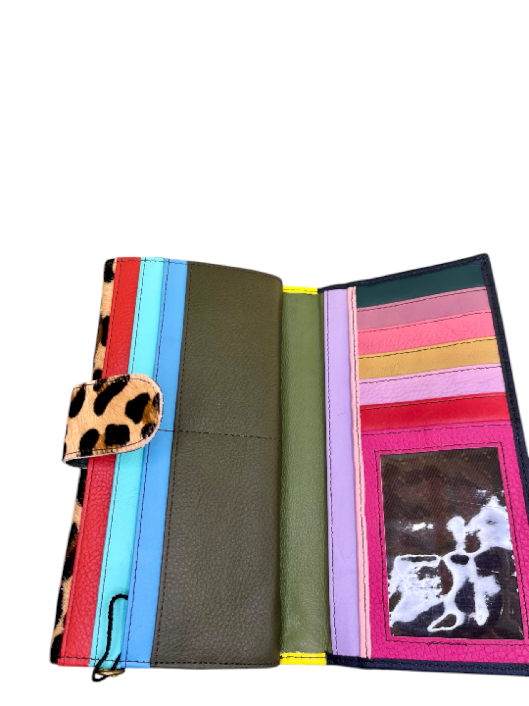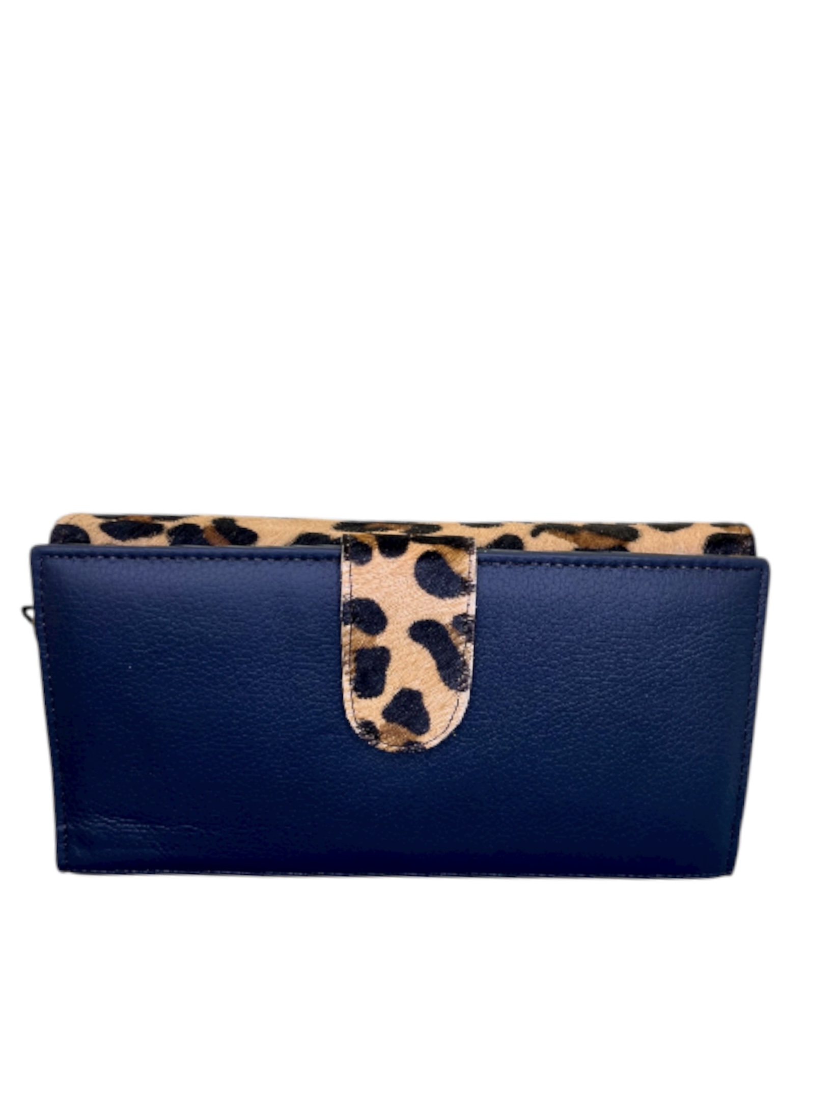 Χειροποίητη τσάντα από 100 % ανακυκλωμένο δέρμα σε αποχρώσεις του κίτρινου και του μπλέ με λεπτομέρεια animal print.