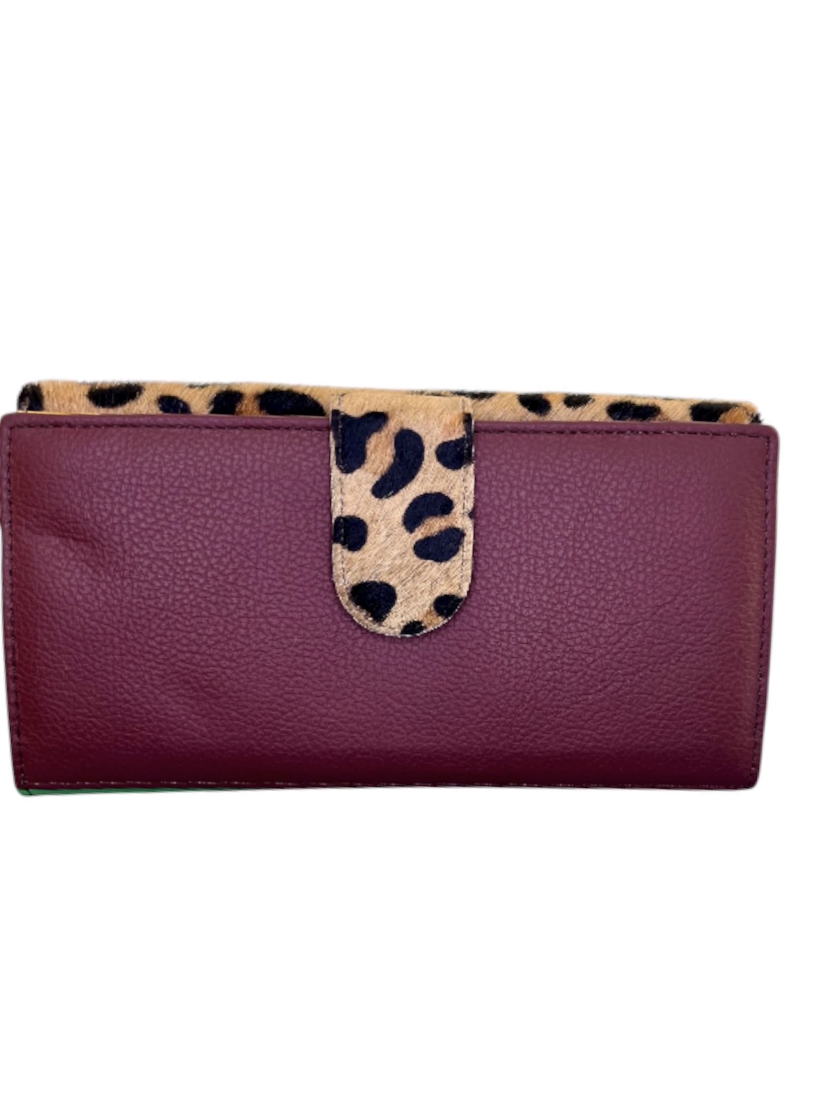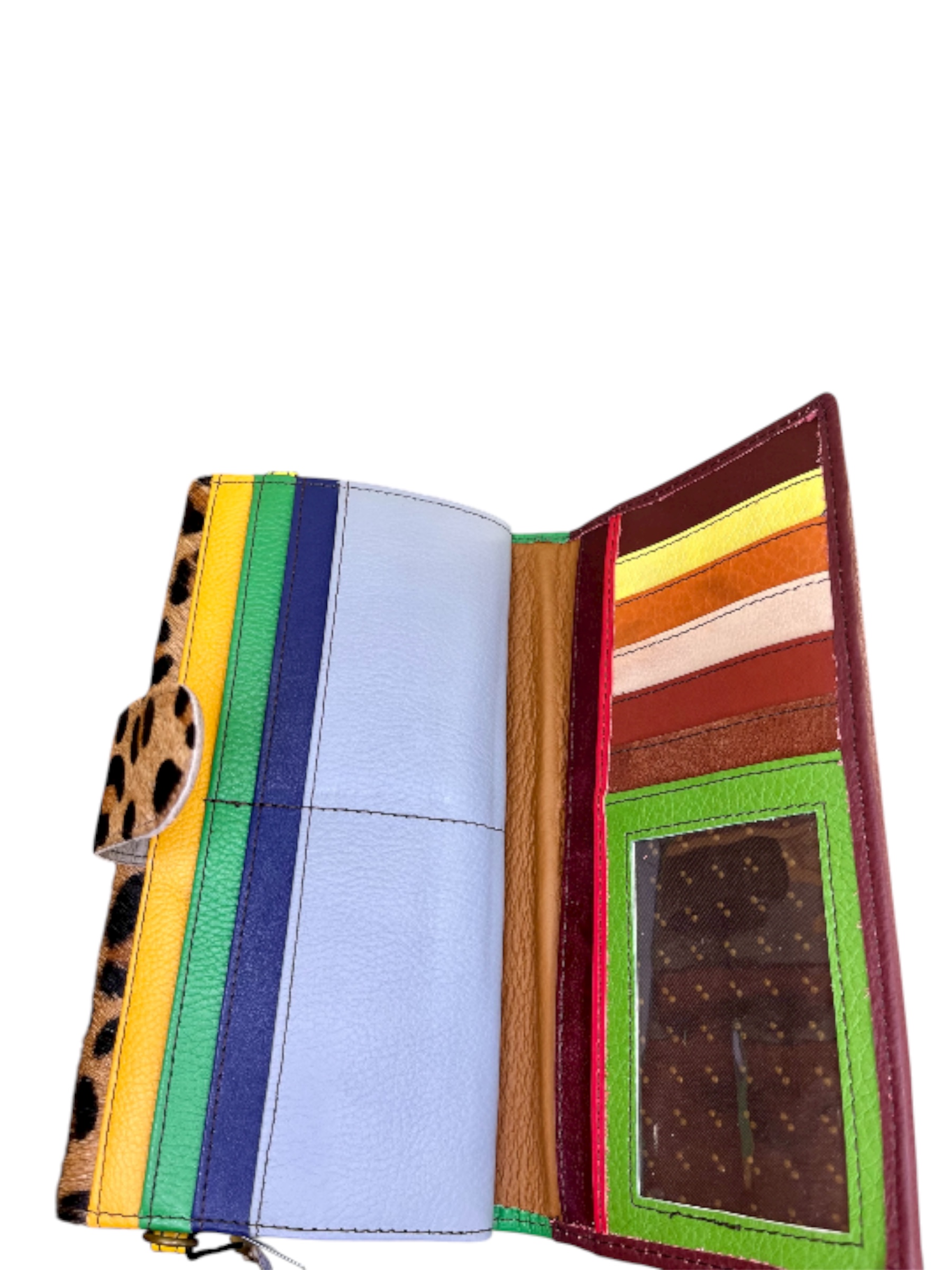 Χειροποίητη τσάντα από 100 % ανακυκλωμένο δέρμα σε αποχρώσεις του πράσινου και του μπορντώ με λεπτομέρεια animal print.